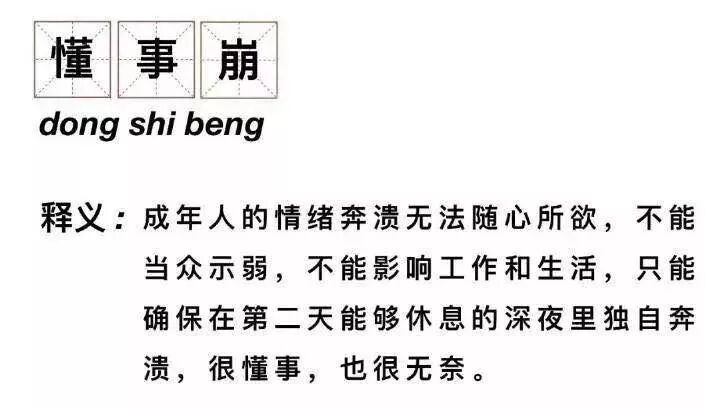 文/若杉 ××× 01 焦虑面前,人人平等 和一个朋友聊天,无意间谈起最近的压力与焦虑。 她说:“你有没有注意到,写字楼的白领占用蹲位的时间都比别的地方长,如果你仔细听,还会听到淡淡的哭声。” 我不坐格子间上班很多年,却也记得,那些被客户气的想哭的时刻,加班累极了的时刻,卫生间的隔间,成了最好的避难所。独立、有冲水声可以掩盖哭声、不用面对同事似真似假的安慰,哭过了,还能默默补个妆,仿佛世界,什么都不曾发生过。 所以,有人说,成年人的两个避难所,上班在卫生间的隔间里,下班在楼下的车库里。 这两个地点,都够独立、够私密,不会被打扰,让你可以偷那么点时间,处理自己的焦虑与崩溃。 在网上闲逛,学到一个新词,叫“懂事崩”。 所谓懂事崩,指成年人的情绪崩溃无法随心所欲,不能当众示弱,不能影响工作和生活,只能在确保第二天能够休息的深夜里独自崩溃。很懂事,也很无奈。 看到这个词的时候,竟瞬间感觉到作为成年人的一丝丝酸楚。很多人,哪怕并不知道并不熟悉“懂事崩”这个词儿,但早已亲身践行着这种成年人特有的崩溃方式。 你有多少次,明明在深夜很想大哭一场,但想着第二天还要上班,怕不知跟同事如何解释自己肿胀的双眼,所以,只好作罢。 你有多少次,明明加班加到怀疑人生,老板还丢过来一个要改的方案,你很想骂人,但是微信里却赶忙回了“好的,老板,没问题”,还配上一张笑脸。 我们真的就这么学会了不动声色的做个大人,情绪稳定,永远积极向上,工作的疲惫不敢跟同事吐槽,怕影响同事干劲儿,或者被人说“你怎么这么消极”;家里的压力不敢跟妻子、孩子讲,因为觉得自己是他们的天,天塌了,他们要怎么过。 所以有人说,成年人的世界,比崩溃,谁不会,比得就是,谁能真正戒掉情绪。 蔡康永曾经在一次演讲中,提了三个问题: 第一个问题:在过去这一年当中,曾经对婚姻感到失望的请起立? 听到这个问题,有一小部分人站起来了。 第二个问题:在过去这一年中,曾经有过辞职的念头的请起立? 有更多的人站了起来。 最后一个问题,每天去刷微信的朋友圈,次数超过五次的请起立? 然后,几乎全场的人都站了起来。 蔡康永说:“这就是生活的真相,焦虑面前人人平等”。 02 戒掉情绪,真的好吗? 杨幂曾在一次访谈中说过这么一段话,她说: “我是一个对自己挺狠的人,而被狠掉的第一条,是情绪。我早把情绪戒掉了,就是和自己死磕,对自己下命令。” “有一次,有件事让我很生气,我对自己说,给你二十四小时的时间,你必须把这件事压下去,这一天,什么都不做,让自己过去。” 杨幂的“情绪戒除法”一度被很多人推崇,认为“优秀的人,如杨幂,早已戒掉了情绪。” 24小时的时间,杨幂真的让事情过去了吗? 其实,我更相信电视剧《请回答1988》的那句台词:大人们只是故作坚强去承担重担,他们不是不疼,是在忍。 忍,从来都不是处理情绪最好的方法。 想到一个来访者的故事。 来访者曾经在一个企业做人力资源的工作,工作敬业,勤勤恳恳,节假日加班更是家常便饭。早在刚入职的时候,就有前辈提醒她,人力资源的工作,与人打交道,在公司里涉及面广,又比较敏感,所以,要学会不把情绪写在脸上。 多年的职业训练,再加上能忍的个性,她真的学会了戒掉情绪。 领导交办的工作她尽力做好,哪怕要求无理,哪怕部门的同事都在吐槽抱怨,她也永远一副元气满满的样子,微笑地面对工作,也微笑地面对每一个人。 可是,表现的没有情绪,并不代表真的没有情绪。她心里积压着的最大怨气在于,来公司五年,职位和薪资竟一点也没有提升,眼看着去年刚入职的同事,马上就要爬到自己头上去了。 她越来越郁闷,表面依然对所有人微笑以待,但很明显,工作效率越来越低,出错越来越多,就连约候选人面试这种事,她都三番五次约错时间。 最近,因为公司业绩不好,有一批裁员计划,她竟也出现了被裁的名单上。 咨询中,连她自己都说:“如果能推心置腹的跟领导聊一聊,或者哪怕吵一架,把心中的苦闷解除,都比把怨气撒在工作上要强得多,如今这个结果,竟连辩驳的理由都没有了。” 其实,情绪从来都是一个很聪明的东西,你以为自己压得巧妙,压得不声不响,但他会以各种你不易察觉的形式表现出来。 刚烈的,会通过行动表现出来,拖延、消极怠工、甚至直接动手打架、都是情绪的表达。 阴柔的,也会积郁在心,以胸闷、失眠、甚至抑郁的形式表现出来。 所以,情绪从来都没办法,真正戒掉。 03 别那么快学会懂事崩 每当看到深夜痛哭的故事,每当听到在写字楼卫生间哭泣的故事,总会打心眼里,觉得心疼。 其实,情绪并没有好坏之分。 悲伤的情绪告诉你,有一个内心受伤的小孩需要抚慰。 愤怒的情绪告诉你,你的心理或者事实边界受到侵犯,要奋起保护。 焦虑的情绪告诉你,心理已经不堪重负,需要给自己减减压了。 你没法真的戒掉情绪,因为他们像一个个敏感的战士保护着你的安危,让你及时采取行动,保护自己。 与其学会懂事崩,与其学会戒掉情绪,不如学习如何与情绪相处。 第一,学会说“不”。 蔡康永说:“对于不喜欢的事情,我们可以说不。该哭的时候哭,该笑的时候笑,只有充分地体会过喜悦和悲伤,才有资格说人生是值得活的”。 其实,你也可以,如果工作负荷过重,如果家人给了你太多不切实际的期望,如果只是单纯地不喜欢某个人、某件事。 懂得说“